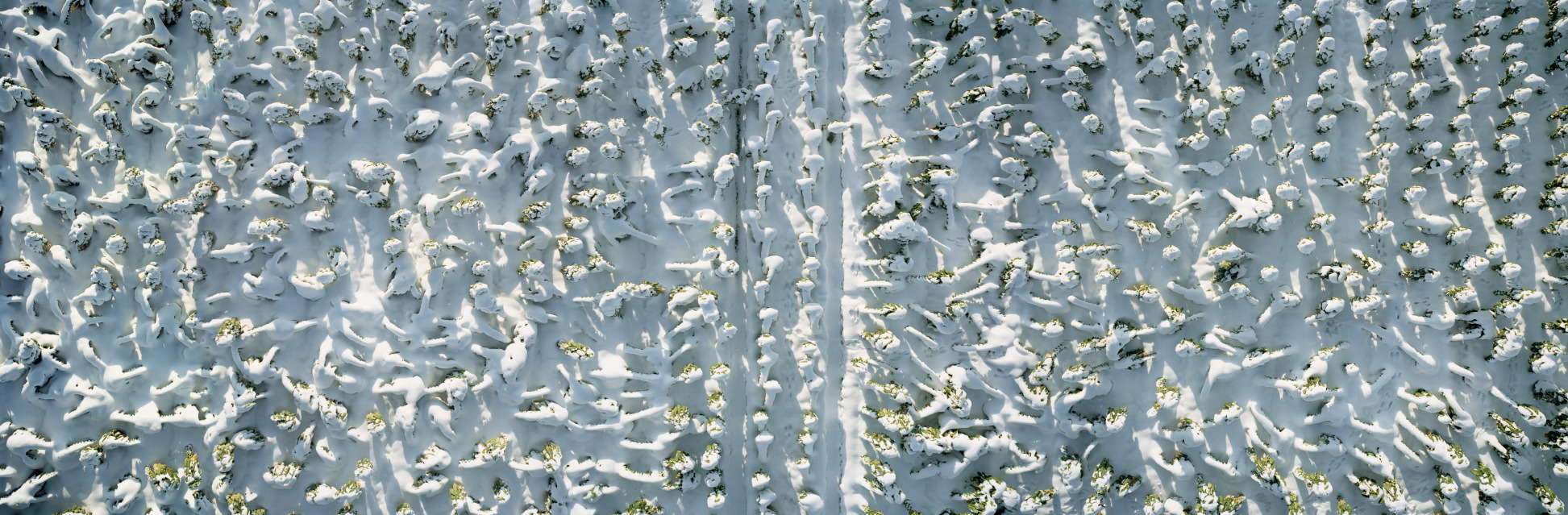 “Als ik door mijn eigen historie blader in het boek dan ben ik in de loop der tijd wat dichter op het landschap gaan zitten; letterlijk qua meters in hoogte, merkt de Ruijter samenvattend op. ”Naast de vlieger ben ik namelijk ook een hengel gaan gebruiken waar ik een zelfgebouwde camera op heb gezet. Het geeft me wat meer controle, dan op grote hoogte te fotograferen met een vlieger. Daar ben ik meer afhankelijk van toeval. Met een hengel kan ik beter inschatten wat er zich binnen het gezichtsveld van de camera afspeelt.’’ Zo heeft de Ruijter een spruitjesveld gefotografeerd vanaf zo’n 10 meter hoogte. Dit keer geen vierkant formaat zoals gebruikelijk, maar een breed panoramisch beeld. “Dit grote werk van mij hangt nu in het fotomuseum in Den Haag, als onderdeel van de tentoonstelling ‘Avonturen op het land’. Je ziet een spruitjesveld in drie opnames die ik naderhand aan elkaar geplakt heb.’’