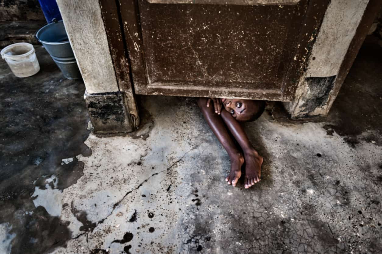 De foto waar het omgaat is een beeld van Malaika, een meisje van een jaar of vier. “Toen haar klamboe vuur vatte, liep ze zware brandwonden op. In het echt zagen haar wonden er nog een stuk heftiger uit dan op de foto, moet ik tot mijn eerlijkheid zeggen. Ik heb zelfs een tijdje getwijfeld of ik haar moest fotografen, omdat haar uiterlijk zo expliciet is. Ik ben geen sensatiefotograaf. Ik wist ook niet zo goed hoe ik ermee om moest gaan. Ik heb haar daarom eerst een beetje genegeerd. Ik heb foto’s gemaakt van haar klasgenoten, om te kijken hoe zij zou reageren en om te kijken hoe ik er mee om zou gaan. Dat was achteraf gezien niet eerlijk, want daarmee sloot ik haar buiten. Ze tikte op een gegeven moment op mijn schouder en vroeg me of ik een foto van haar wilde maken. Daar heb ik de tijd voor genomen. Ik heb haar op verschillende momenten en met verschillende achtergronden gefotografeerd. De foto die ik voor de tentoonstelling heb geselecteerd is niet de eerste of de laatste foto die ik van haar heb gemaakt. Ik wilde het echt goed doen.”