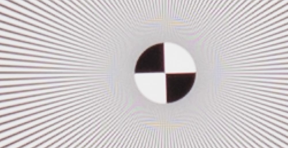 De foto’s zijn gemaakt van een zogeheten Siemens ster die bestaat uit een cirkel van naar binnen toe steeds dunner worden lijnen. Die lijnen zijn overigens niet scherp, maar ze hebben zachte randen. Je kunt zelf kijken naar de opnames, maar ze zijn eigenlijk bedoeld om via een computerprogramma te worden geanalyseerd. Wat je er aan kunt zien en wat de software er aan berekent is dat er een scherpteverschil is, de ‘R’-versie biedt iets meer scherpte, maar wanneer je het kleurprobleem dat zich als moire aandient niet in de software verwijdert is die hogere scherpte niet te zien. In cijfers is de scherpte ongeveer 94% bij de 5DS, 97% bij de 5DS R en 100% bij de 5DS R waarbij moiré reductie is toegepast. Hieronder de voorbeelden op 100%, onder aan de pagina nog een keer op 400%. Dan zie je de verschillen wel goed, maar je kijkt natuurlijk ook naar onzinnig kleine details.
