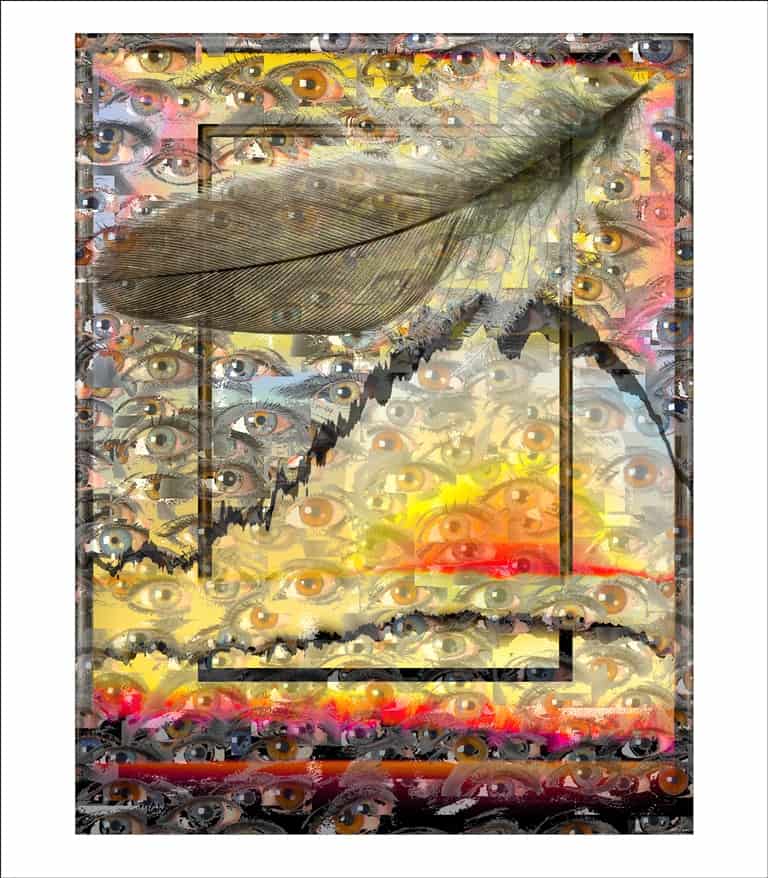 ‘Under pressure’ gaat deels over Timmers zelf. Ook laat het zien hoeveel er in de geneeskunde met curves wordt geregistreerd. “Een aantal jaar geleden weigerde mijn dominante oog. Ik had een beginnende netvliesloslating. Voor een fotograaf is dat rampzalig, ik zou stekeblind kunnen worden. Door middel van laseren hebben ze mijn netvlies vast kunnen zetten. Het netvlies laat los door onder andere een hoge oogboldruk. Daarnaast had ik destijds last van een te hoge bloeddruk. Of de hoge bloeddruk en de oogboldruk iets met elkaar te maken hebben, weet ik niet, maar volgens specialisten zou dat best kunnen, al is hier geen eenduidigheid over. De ogen verwijzen ook naar de starende ogen van publiek. Dat gezien worden kent iedere fotograaf. Het veertje dwarrelde voorbij, een donsje van 4 centimeter, en verbeeldt de lichtheid van het bestaan.