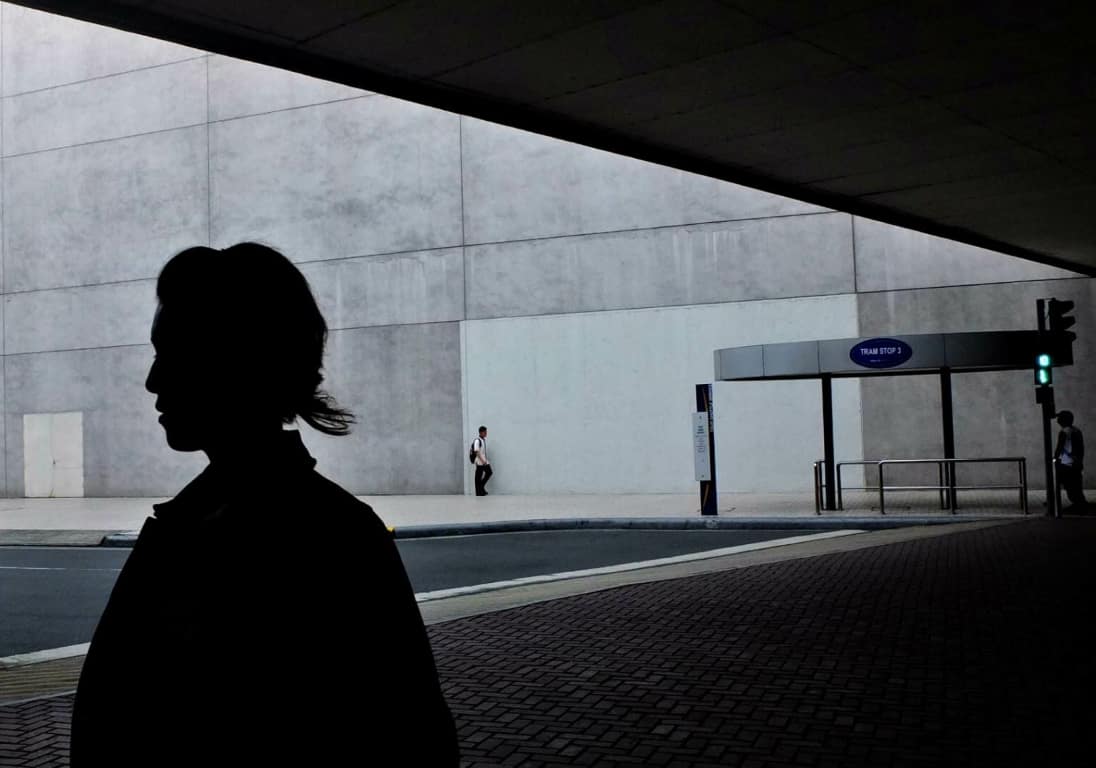 “In veel van mijn foto’s zie je silhouetten van mensen die zich bezig houden met alledaagse dingen zoals wandelen of op hun mobiel kijken. In dit geval zag ik aan de overkant van de straat een vrouw die diep was weggedoken in haar jas. Ze leek in gedachten verzonken. Tijdens het oversteken heb ik de foto gemaakt. Ik vraag me nog steeds af waar ze aan dacht.”