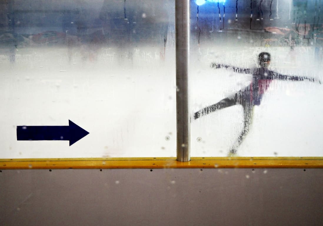 “De indoorschaatsbaan is altijd een interessante plek voor foto’s. Tijdens een van mijn bezoekjes was een jongen zijn sprongen aan het oefenen. Bij deze sprong was zijn landing perfect. Interessant aan dit beeld vind ik de combinatie tussen de gracieuze beweging van de schaatser en de pijl, die lijkt te zeggen: ‘zo moet je schaatsen’.