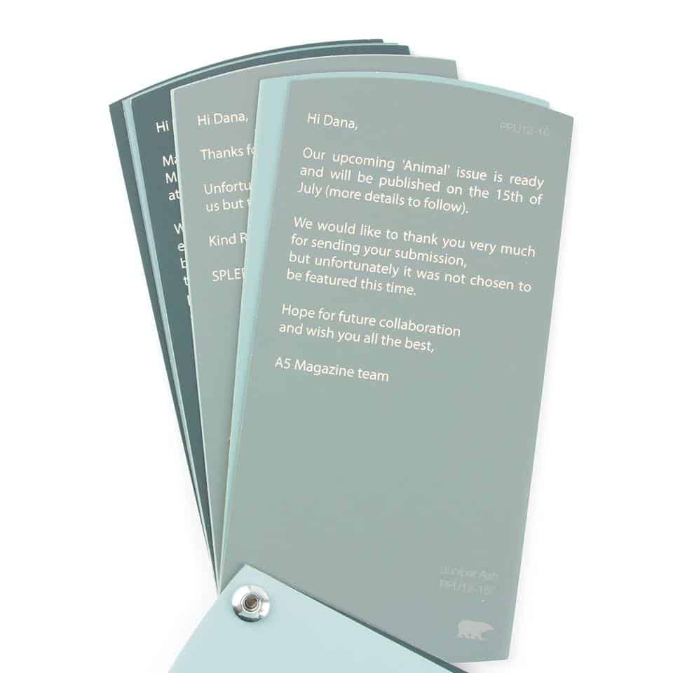 Succes wordt breed uitgemeten in onze maatschappij. Op social media lezen we vooral over elkaars successen en hoe blij en gelukkig we zijn. Fotografe Dana Stirling laat in haar boek ‘Dear artist, we regret to tell you’ de andere kant van de medaille zien. In haar boek zijn afwijzingsbrieven die ze door de jaren heen ‘verzamelde’, gebundeld.