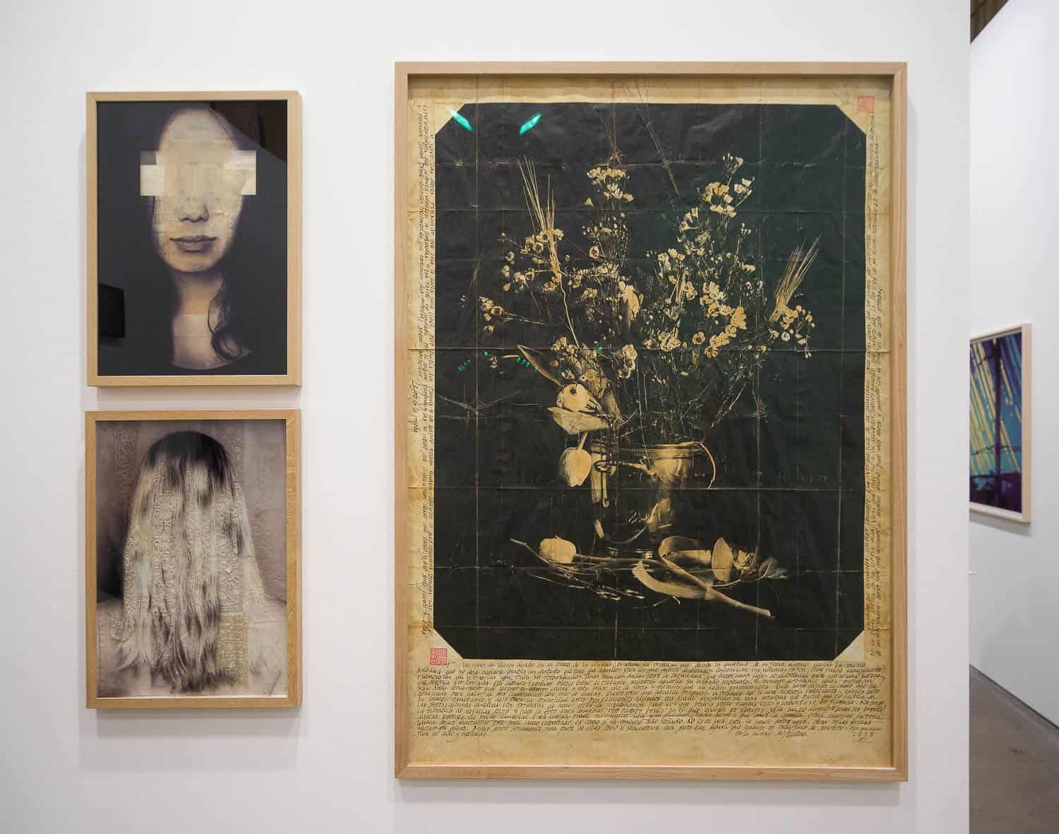 Het hart van Unseen, de tentoonstellingen van meer dan 140 kunstenaars (zeg geen fotograaf meer!) vertegenwoordigd door 53 galeries, uit de hele wereld, van Engeland tot Qatar. (De meeste galeries kennen we nog van voorgaande jaren). Nog steeds is het de Unseen organisatie eraan gelegen haar naam waar te maken want de meeste werken zijn nog ongezien, Unseen. Het lijkt dat de kwaliteit van de werken consistenter is geworden. Waren er in voorgaande jaren nog kunstwerken bij die een zekere mate van artistieke gekunsteldheid toonden, nu lijkt de selectie strenger geworden te zijn en tonen de werken een volwassen signatuur van de makers. Er lijkt een groot aantal werken de natuur tot onderwerp te hebben, echter niet als realistische afbeelding, maar als ruw materiaal dat tot poëtisch materiaal bewerkt is. Werken van Albarrán Cabrera, Alexander Mourant, Awoiska van der Molen, Elsa Leydier, Jungmin Lee (geplaatst in Pf maart 2017) getuigen hiervan. Een andere stroming is de bewerking of collage van de oorspronkelijk opnamen of geconstrueerde opnamen in de studio. Zie de werken van Alice Quaresma, Daisuke Yokota, Erin O’Keefe, Carolien Scholtes, Ester Vonplon. In ieder geval is éen ding zeker. De realiteit is uit de fotografische beelden op Unseen vrijwel geheel verdwenen. De galeries hoefden niet te klagen over het succes hiervan. Langslopend konden we regelmatig horen dat de ‘hele editie al was uitverkocht’.