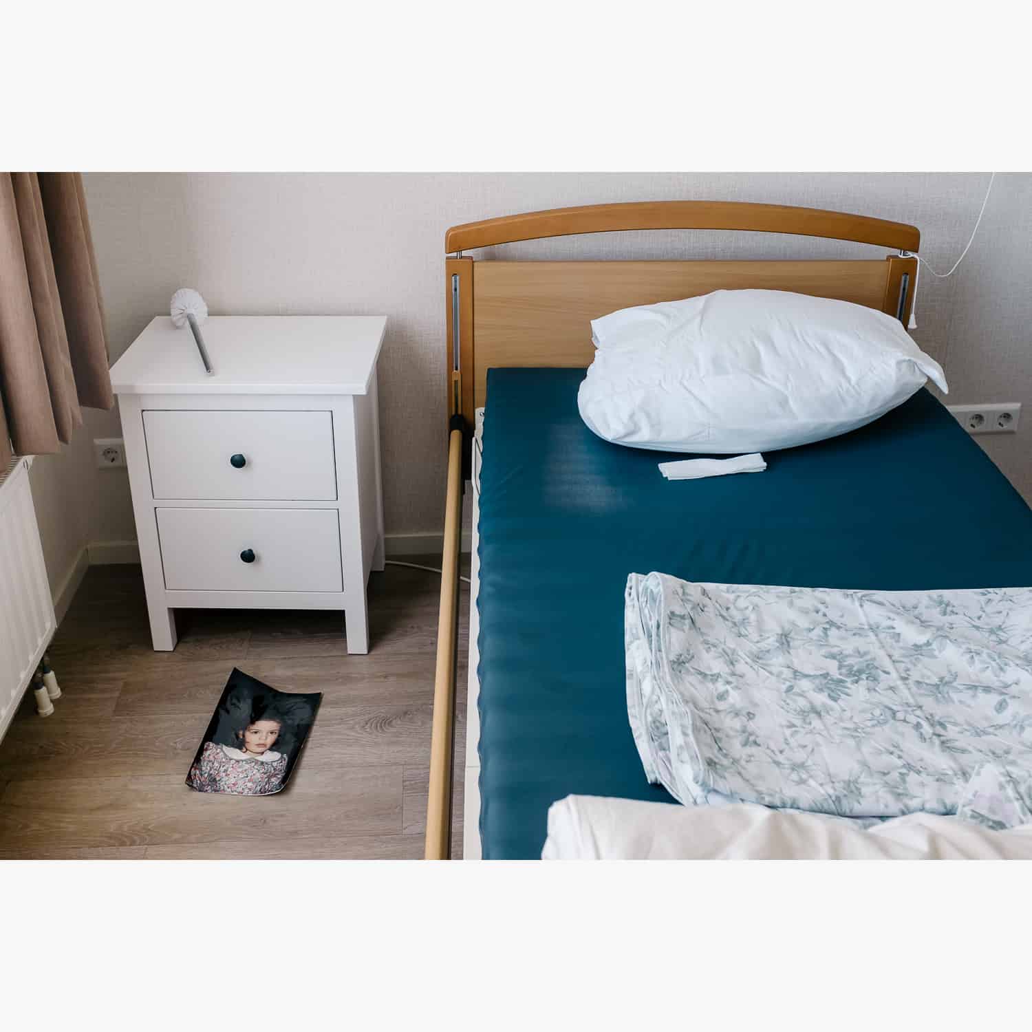 Een foto die hij daarom bewust niet heeft opgenomen in de serie, is een beeld waarin zijn vrouw de hand van haar moeder vasthoudt. “Dat was op het moment dat mijn vrouw haar ging vertellen dat het echt niet meer thuis ging. Ze hielden elkaars hand vast en mijn schoonmoeder moest heel erg huilen. Dat moment en dat beeld vond ik te intiem.”