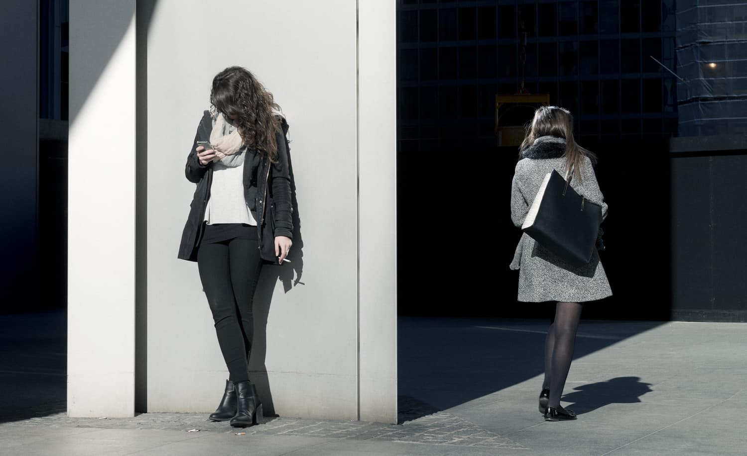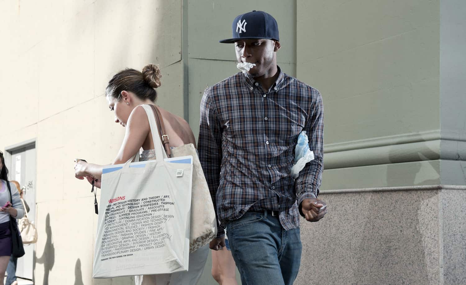 “Ik vroeg me af welke invloed de bevolkingsdichtheid heeft op de manier hoe we met elkaar omgaan. Als je kijkt naar de evolutie van de mens, wonen we nog niet zo lang in grote steden. Aan dit leven zijn we nog steeds niet helemaal gewend. Bijna iedereen heeft in een bepaalde mate last van pleinvrees. Dit zie je terug in de manier waarop mensen zich presenteren in de publieke ruimte. Ondanks ons verlangen om bij een groep te horen, sluiten we ons in drukke ruimten vaak voor de ander af. We verschuilen ons achter een masker, met oordopjes, zonnebril en telefoon en een blasé houding. Ook zie je in drukke straten een natuurlijk spel, een soort krachtenmeting: wie gaat aan de kant voor wie. Heel interessant vind ik dat.”