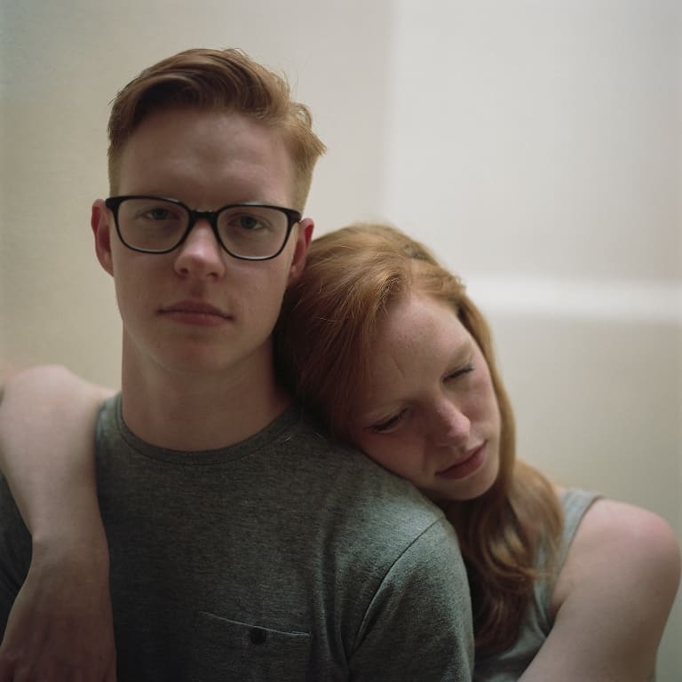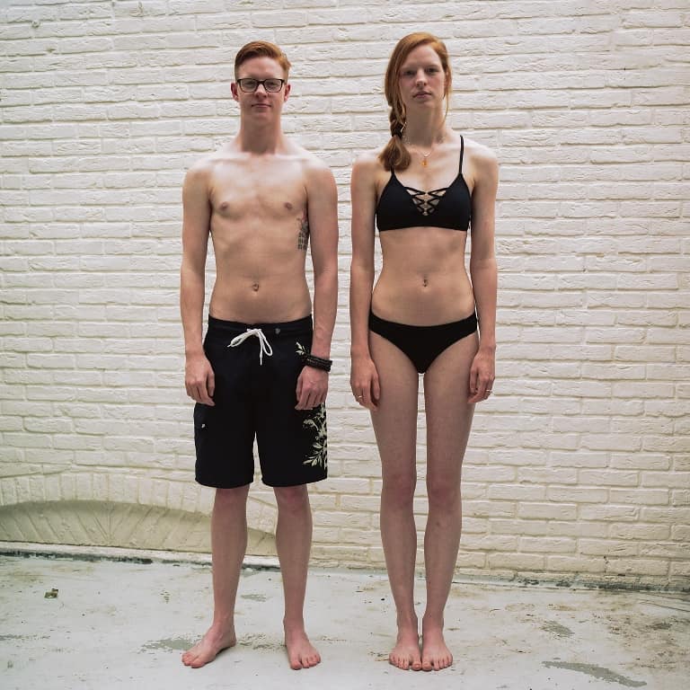 Meedoen aan dit project was vooral voor Yentl een drempel die ze over moest. “Laurens heeft al verschillende presentaties gehouden over hoe het is om transgender en tweeling te zijn. Hij is gewend zijn verhaal te delen. Voor Yentl was het minder vanzelfsprekend. In het begin wilde ik vooral de uiterlijke verschillen in kaart brengen. Ik focuste eerst op Laurens, vond het fijn om hem 1-op-1 te kunnen spreken. Af en toe maakte ik een portret van Yentl. Na een aantal te hebben gemaakt, werd ik juist getriggerd door haar foto’s. Daar zit iets, dacht ik. Toen pas realiseerde ik me dat met het veranderen van Laurens, niet alleen hun identiteit als tweeling veranderde, maar dat het ook consequenties had voor haar zelfbeeld. Vanaf dat moment ben ik gaan vastleggen wat de verandering voor hen beide betekent.”