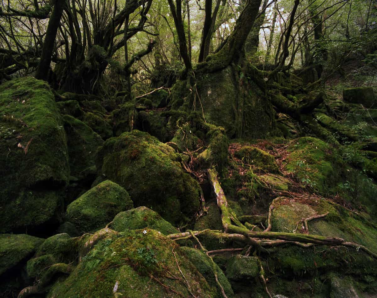 Aan dat project gaf Hassink een vervolg in Kyoto, Japan. In boeddhistische tuinen is geen sterke grens tussen privé en publiek want er zijn schuifdeuren waardoor de binnen- en buitenruimte in elkaar overvloeien. “Dat vond ik heel fascinerend. Zo ben ik begonnen met het project View, Kyoto. Het iseen uitgebreide fotoserie en een film waarin ik de relatie onderzoek tussen de binnen- en buitenruimtes van boeddhistische tempels in Kyoto.In dat project combineerde ik ook videobeelden van boeddhistische tuinen met uitspraken van de monniken. Ik heb tien jaar in Japan gewerkt en heb een goed contact met de monniken. Ik heb veel met ze gesproken over hun concept van de natuur. De boeddhistische tempel Saihō-ji heeft een tuin met honderden verschillende soorten mos en de monniken vertelden dat dit was geïnspireerd op het ongerepte, met mos beklede oerbos van Yakushima, een eiland in het zuiden van Japan. Vanwege die oerbossen is de natuur daar fantastisch. Ik ben naar Yakushima gegaan om te fotograferen. Toen ik daar met mijn Japanse assistent aan het werk was, bleken onze telefoons geen bereik meer te hebben. Toen dacht ik aan het boeddhistische concept ‘ma’, wat betekent: de mentale ruimte die je nodig hebt om goed te kunnen functioneren. Door de constante digitale ruis verdwijnt die ruimte en word je heel onrustig, waardoor je uit balans raakt.”