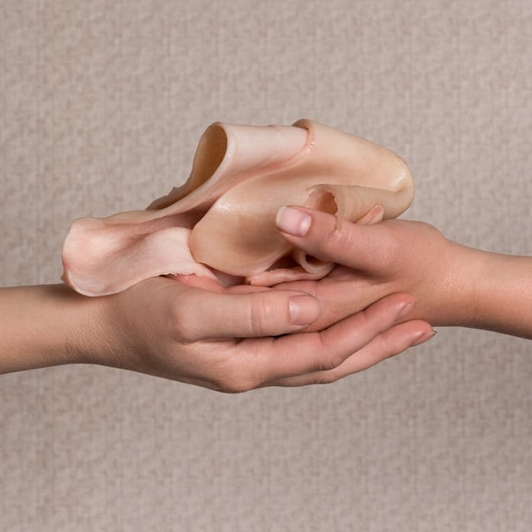 De fotoserie is anoniem, er zijn geen gezichten te zien. De serie maakt direct duidelijk waar het over gaat. “Dat wilde ik ook, zonder uitleg moet duidelijk zijn waar de foto’s over gaan.” Daarom zijn echte organen te zien. Niet van een mens, maar organen van een biologisch varken. Die lijken het meest op organen van een mens. “De fotoserie is heel letterlijk geworden. Dat past bij het onderwerp: orgaandonatie gaat over leven of dood.”