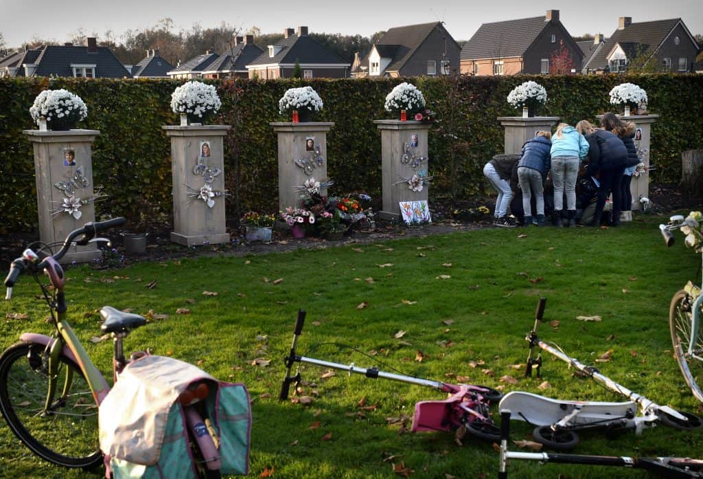 Een groepje meisjes ineen bij de herdenkingsplek voor de familie Wals. Dit hele gezin bestaande uit 6 leden waaronder hun klasgenootje vonden de dood. Bij de ramp kwamen in totaal 298 mensen om waaronder 196 Nederlanders.