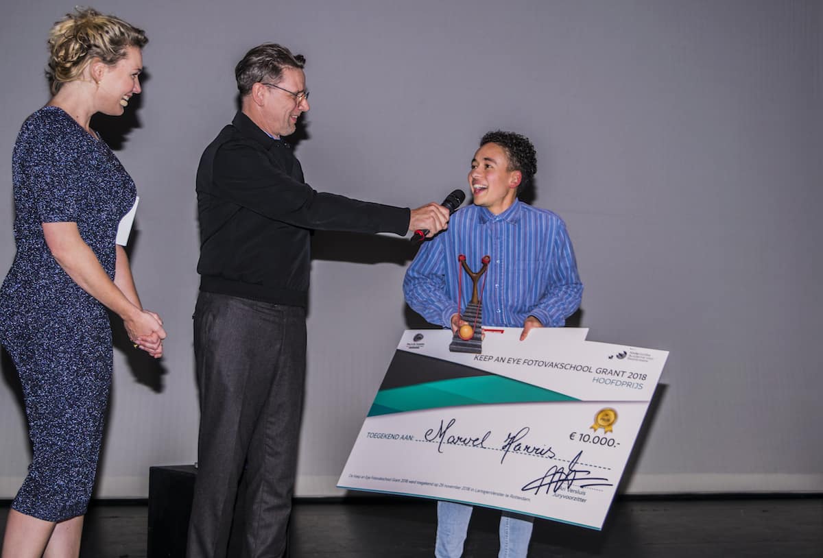 Tijdens de feestelijke Keep an Eye Grand Grant Evening op 29 november bij film- en muziektheater LantarenVenster in Rotterdam zijn aan veelbelovende talenten van de Nederlandse Fotovakschool grote fotografieprijzen uitgereikt. Zij krijgen hiermee een prachtige kans een veelbelovende start te maken aan het begin van hun fotografie carrière. Fotograaf Marvel Harris is verkozen tot de grote winnaar met het beste fotografische werk en het meest originele projectplan. Hij heeft de hoofdprijs gewonnen ter waarde van €10.000,- en mag daarmee zijn plan gaan realiseren.