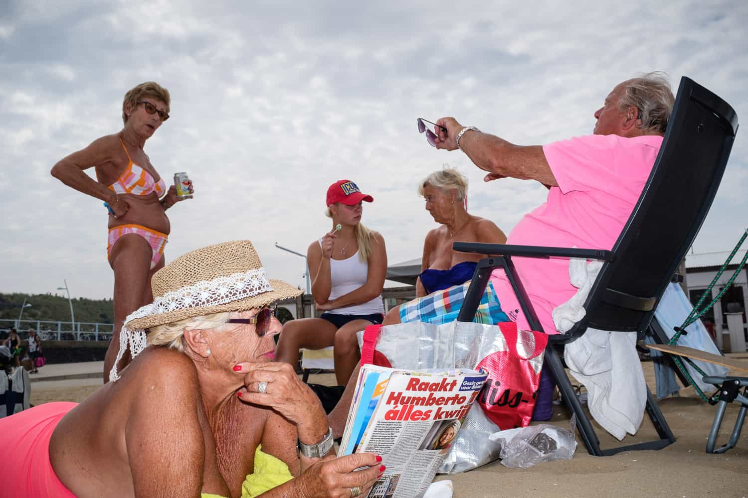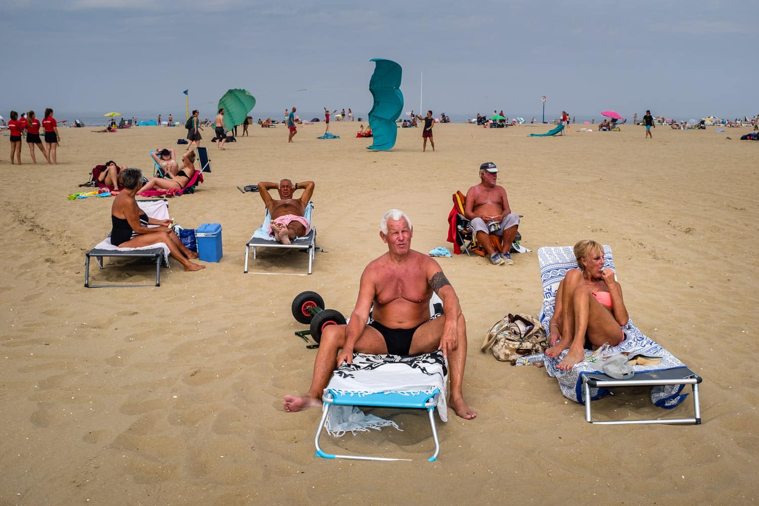 “Fotograferen op het strand betekent balanceren op een gevoelige scheidslijn. Het is best lastig, je wilt mensen niet van te voren alarmeren, wat de spontaniteit uit foto’s haalt, maar stiekem fotograferen is geen optie. Als fotograaf ben ik heel zichtbaar. Ik werk regelmatig met flits. Het liefst maak ik contact met mijn onderwerp. Wanneer ik mensen fotografeer, probeer ik vaak even een praatje te maken. Ik leg mensen rustig uit waarom ik foto’s maak. Als ik erbij zeg dat het een mooi beeld oplevert, vinden de meeste mensen het helemaal niet erg. Het vervelendste voorval tot dusver was een jonge man die mijn camera dreigde af te pakken en weg te gooien. In zo’n geval blijf ik rustig en bied ik aan de opname te verwijderen. Dit voorkomt verdere problemen.”