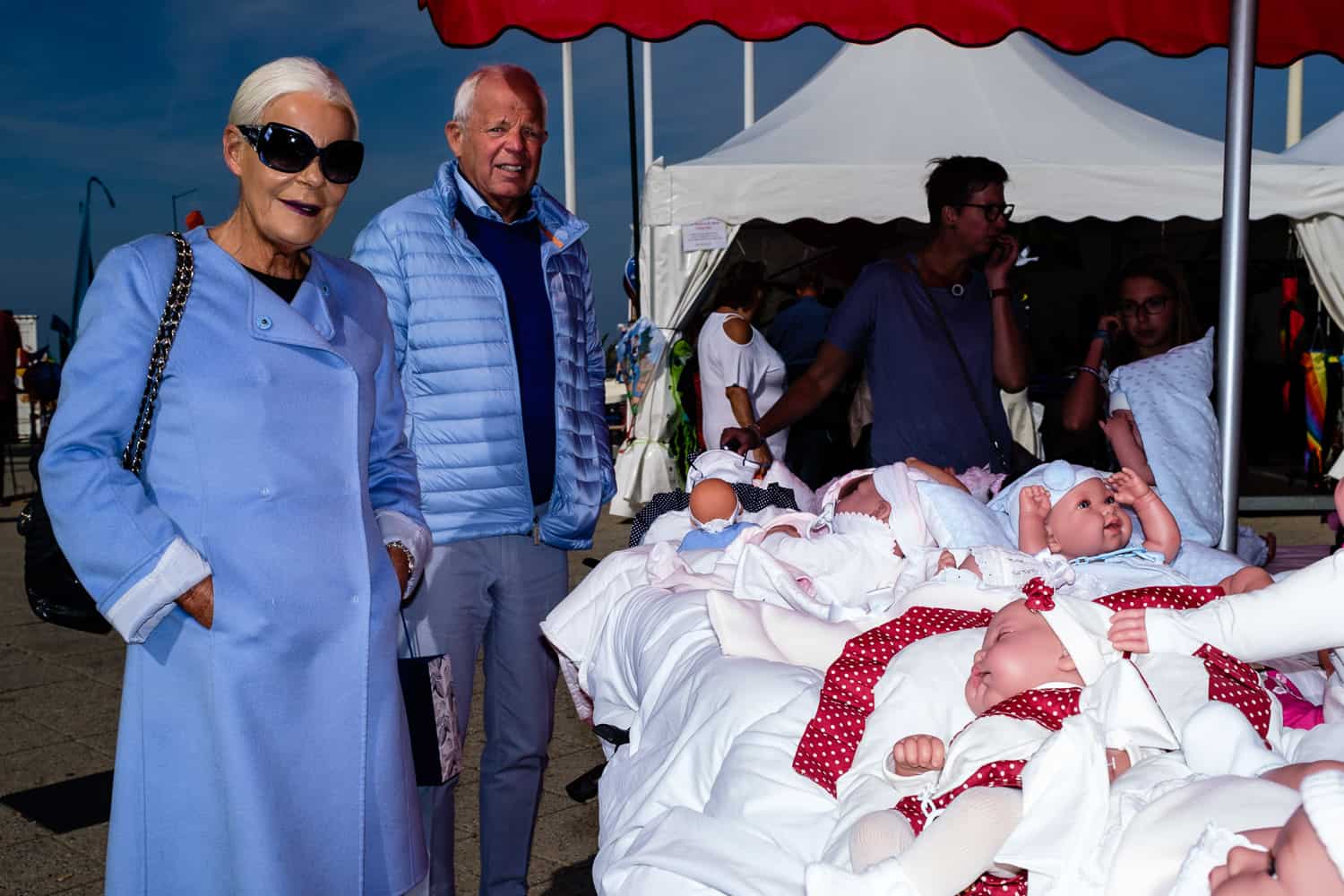 De echte Scheveningers pikt hij er zo uit. Hij moet even nadenken waarom dat zo is. “Ze zijn heel erg zichzelf, stralen een soort trots uit. Ze proberen niet in de massa op te gaan. Het zijn heel vriendelijke mensen wanneer je interesse in ze toont. Eén van mijn favoriete foto’s is die van de mensen bij de poppenkraam, in paarsige jassen. Of die van de mensen op het strand. Allemaal echte Scheveningers!”
