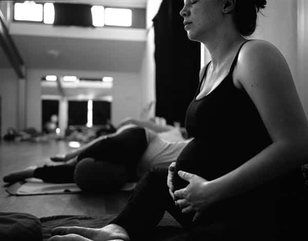 “Toen de bevalling dichterbij kwam, ik was inmiddels aan de zwangerschap gewend, dacht ik: eigenlijk moet ik nu doorzetten en ook de bevalling fotograferen. Ik moest wel even nadenken over hoe ik dat ging aanpakken. Tijdens mijn zwangerschap heb ik foto’s geschoten op film. Ik maak meestal foto’s op 6X7 formaat. Dat betekent dat ik na tien foto’s van rolletje moet wisselen. Bij de bevalling is dat natuurlijk geen optie. De bevalling heb ik daarom digitaal gemaakt, met de camera op een statief en een afstandsbediening. Ik heb mijn man gevraagd om het statief op de goede plek te zetten. Of het zou werken was een beetje de vraag. Je hoort wel dat vrouwen tijdens de bevalling in zichzelf zijn gekeerd, de wereld om hen heen niet echt opmerken. Ik heb alles voorbereid, camera ingesteld en dan zou ik wel zien of het ging lukken.”