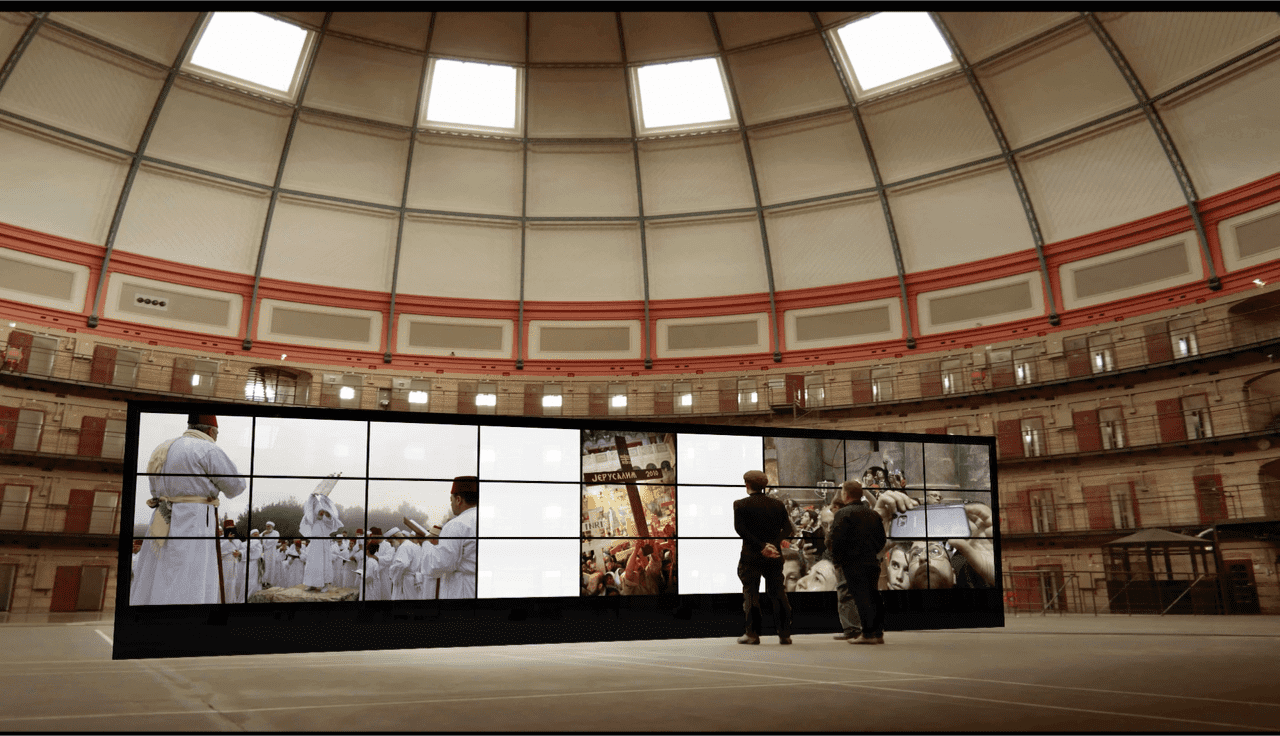 ‘The Believers’ is een video-installatie opgebouwd uit 27 schermen die een 12 meter lange videomuur vormen, gesitueerd in het midden van de koepelgevangenis In Breda. De video-installatie toont tien hoofdstukken die de menselijke conditie weergeven in relatie tot rituelen en aanbidding van het jodendom, het christendom en de islam én hoe recentere wereldwijde rituelen, die van de almachtige algoritmen, het opnemen, uploaden en delen.