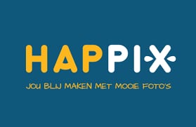 “Happix is een samentrekking tussen happy en pics. De ‘a’ in Happix heeft een boogje gekregen, net een glimlach. De x ziet er door de puntjes ernaast uit als een flits. Zo komt wat we zijn terug in onze naam. Ons logo is overal in opgenomen, zelfs in de handtekening onder e-mails.”